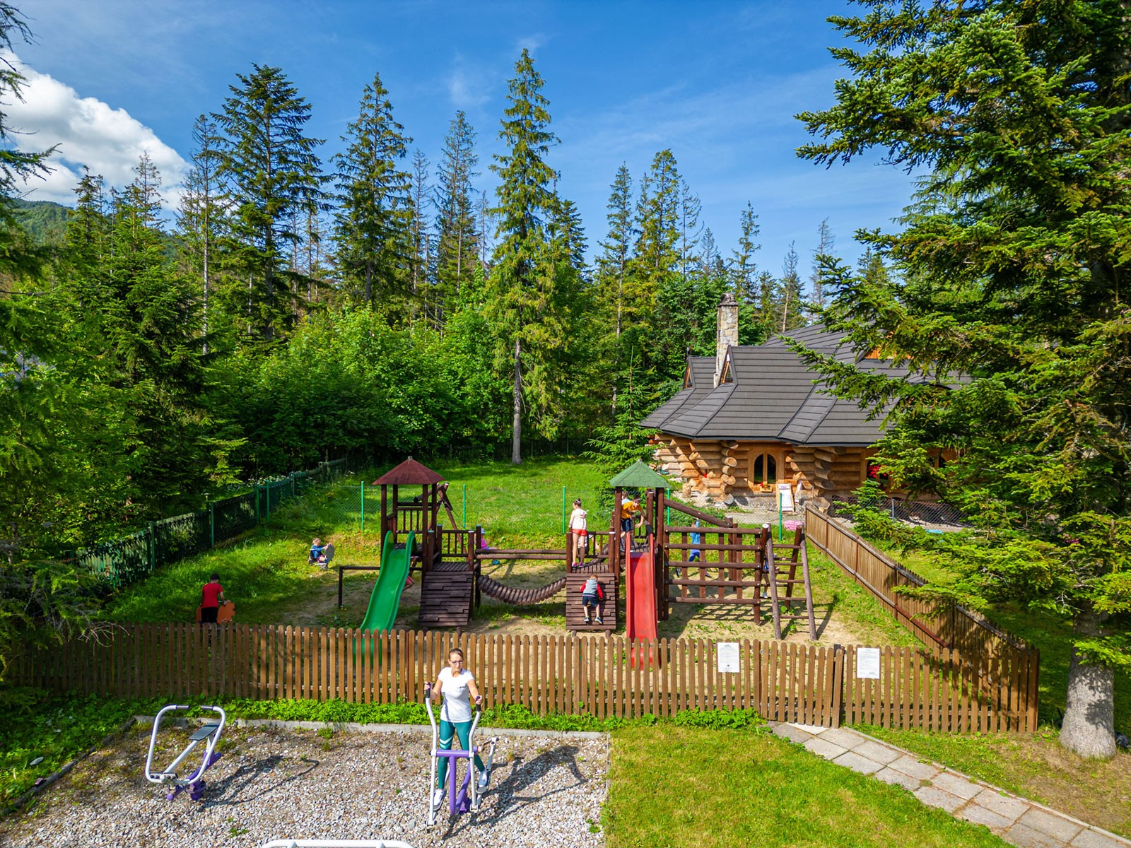 Zewnętrzna Strefa Rodzinna, którą tworzy kompleks urządzeń zlokalizowanych w ogrodzie, daje możliwość wspólnej zabawy, jak również ćwiczeń fizycznych. Świeże górskie powietrze, Dolnego Regla Tatr, napływające z Doliny Białego – ścisłego rezerwatu przyrody – jest atutem dodatkowym. Specyficzny mikroklimat doskonale wpływa na drogi oddechowe.